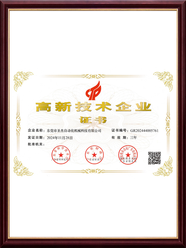 東莞市圣杰自動化機械科技有限公司成立于2010年,座落于電子名鎮(zhèn)——廣東省東 莞市石碣鎮(zhèn),注冊資金800萬,擁有多項發(fā)明專利,實用新型專利,并通過了 ISO9001質(zhì)量管理體系認證,經(jīng)過多年的發(fā)展與技術(shù)沉淀,公司已發(fā)展成為一家專 業(yè)從事非標(biāo)自動化設(shè)備研發(fā)、生產(chǎn)、銷售為一體的高新技術(shù)型企業(yè),并在行業(yè)具有 一定的知名度。 圣杰擁有一支高素質(zhì)、高效率且多年從事非標(biāo)自動化設(shè)備研發(fā)與生產(chǎn)的工程技術(shù)團 隊,為客戶提供工程設(shè)計、制造安裝、現(xiàn)場調(diào)試、技術(shù)培訓(xùn)等全方位的自動化設(shè)備 解決方案。主要涉及行業(yè)有:電子連接器行業(yè),建筑五金行業(yè),儀表行業(yè),汽車配 件行業(yè)等。